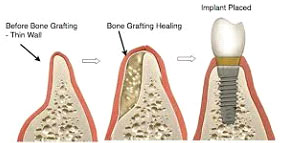 A ridge augmentation procedure may be performed by placing bone graft material into a tooth socket at the time of an extraction, or adding it later to an already existing and deficient area. While in certain situations, dental implants can be placed at the time of a ridge augmentation procedure; they are more often placed after sufficient healing has occurred. By this time, the bone graft has successfully fused with the existing bone, and new bone has formed.